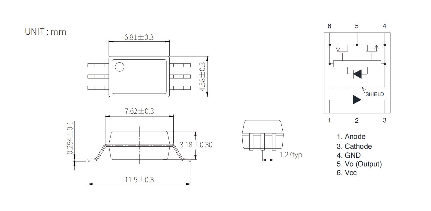 Product Package size(LxWxHmm) IFLH (Max) (mA) VCC (Min) (V) VCC (Max) (V) tPHL(ns) tPLH(ns) Output Current (A) CMR(V/us) Topr (Min) (degC) Topr (Max) (degC) Viso (Vrms)
