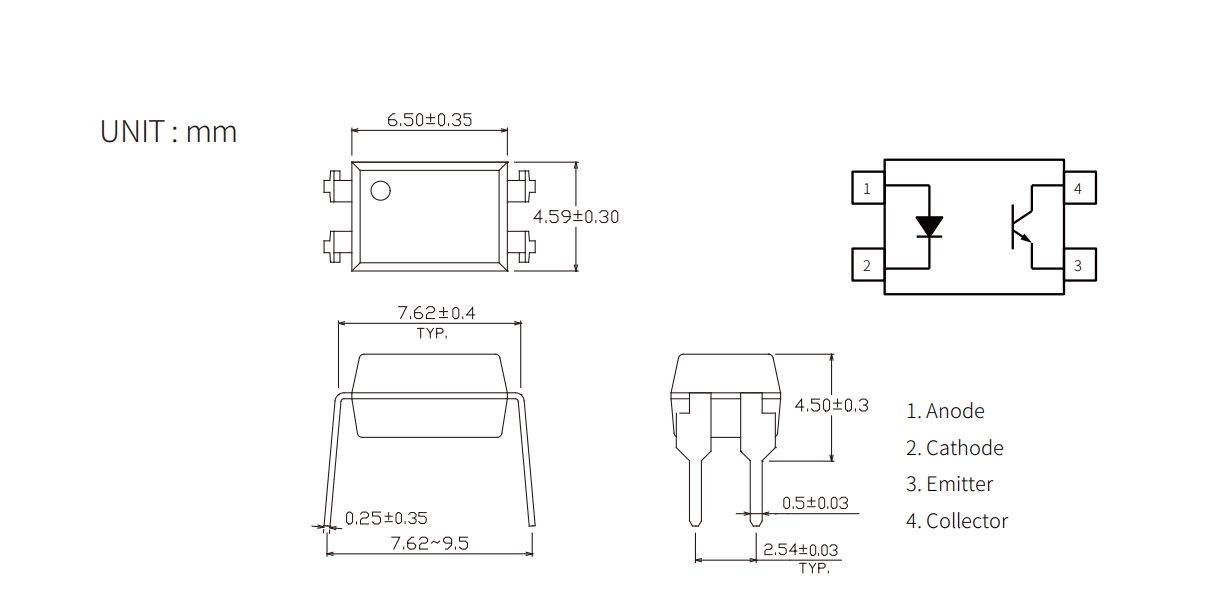 | KL817H | DIP4 | 6.5x4.59x3.5 | 1.2 | 80 | 0.35 | 5 | 50~400 | 6 | 8 | - | - | -55 | +125 | 5000 |